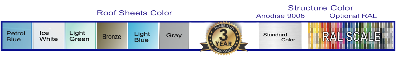 High Quality aluminium structure. Anodized aluminium or RAL color powder painting.