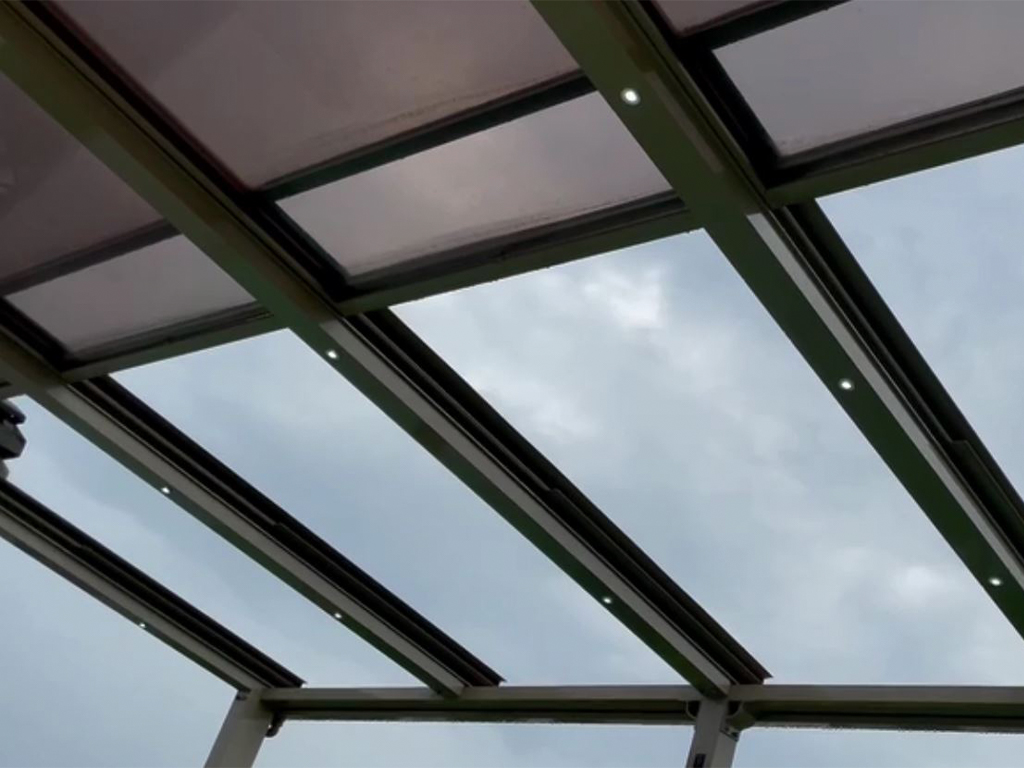 6 or 8 mm PMMA roof sheets, 100% UV protection.