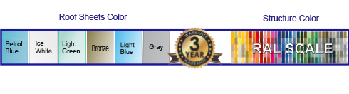As your choice RAL structure color, and roof sheets color.